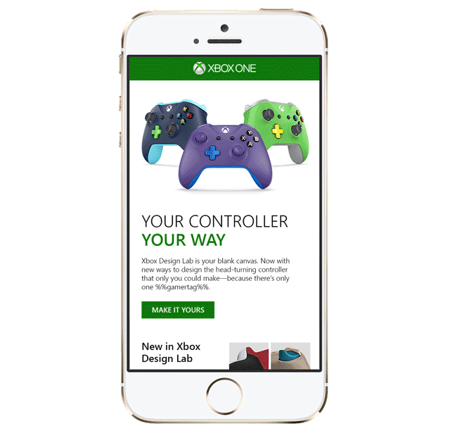 Remind Xbox users of Xbox's Design Lab where they can create beautiful custom controllers to suit their style.
